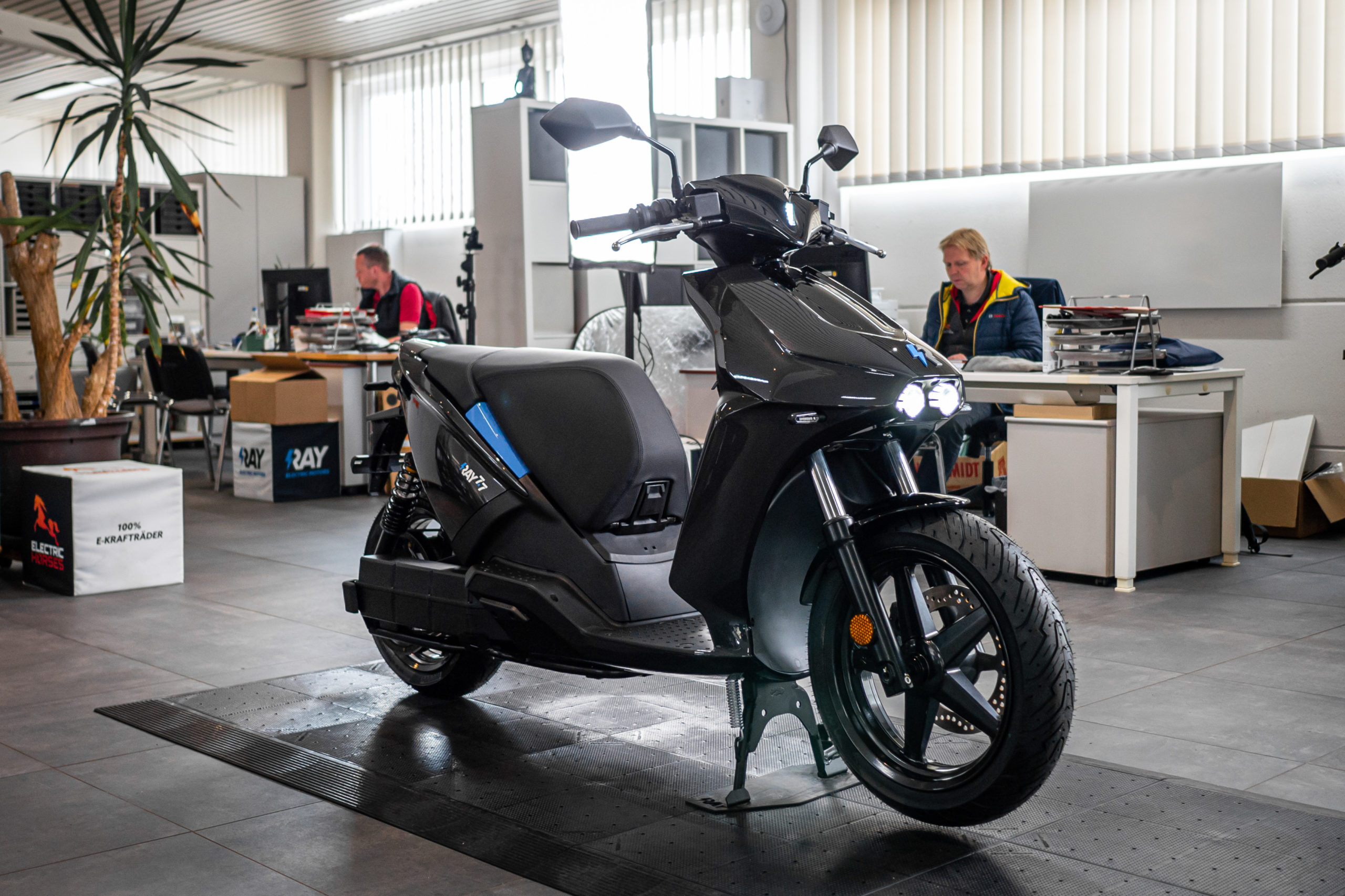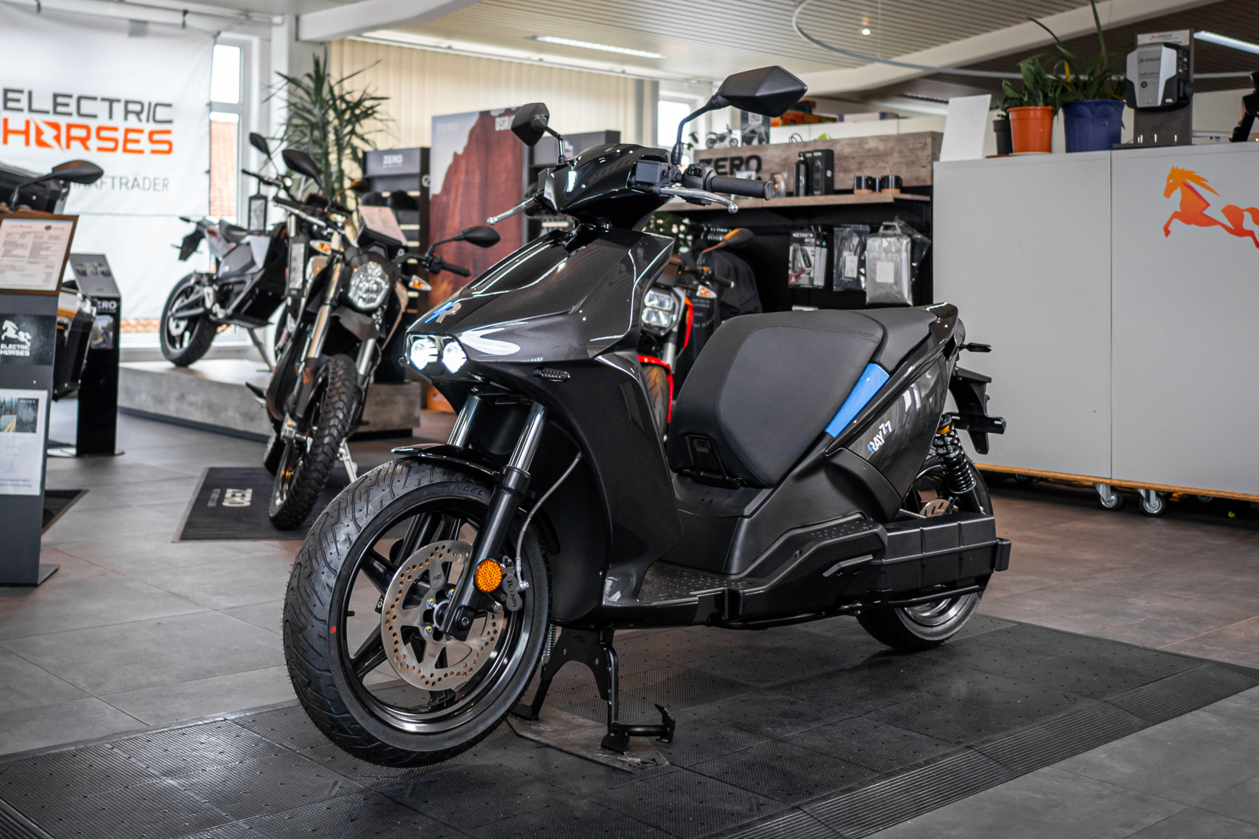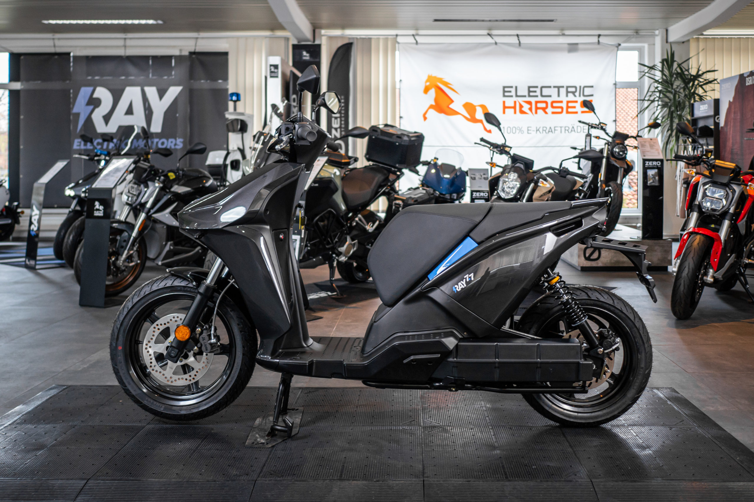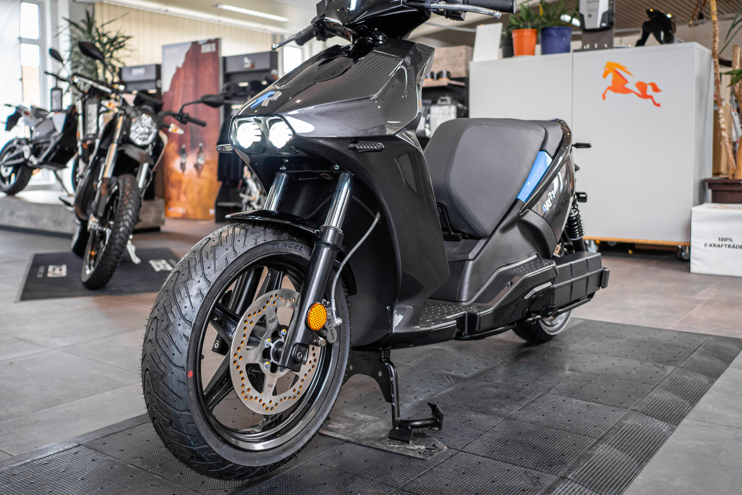 Von A nach B auf höchstem Niveau. Der fahraktive 129 km/h schnelle Elektro-Roller von Ray vereint Fahrspaß und Praktikabilität bei 100% Alltagsnutzen.