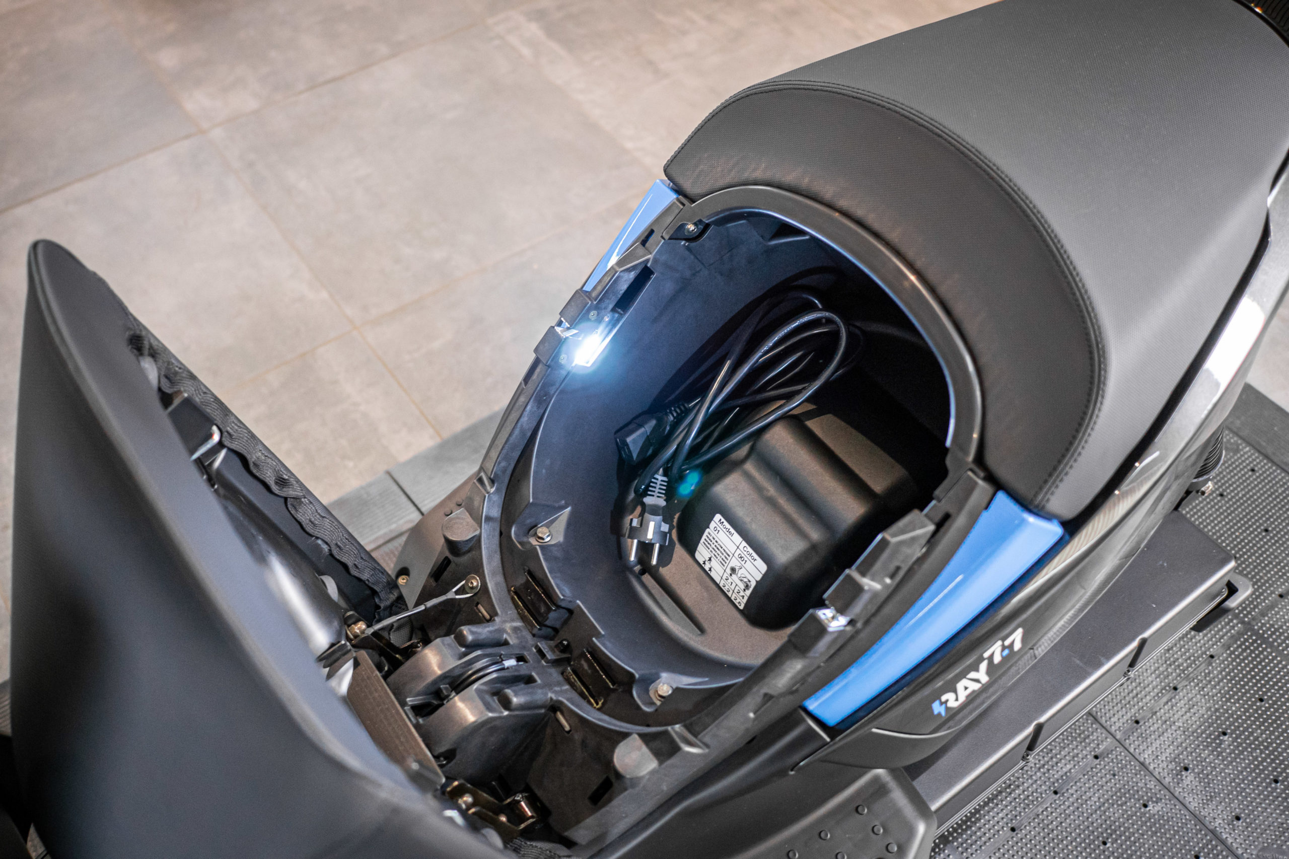 | Staufach Sitz | Großes Staufach mit LED-Beleuchtung mit Platz für vollwertigen Helm |