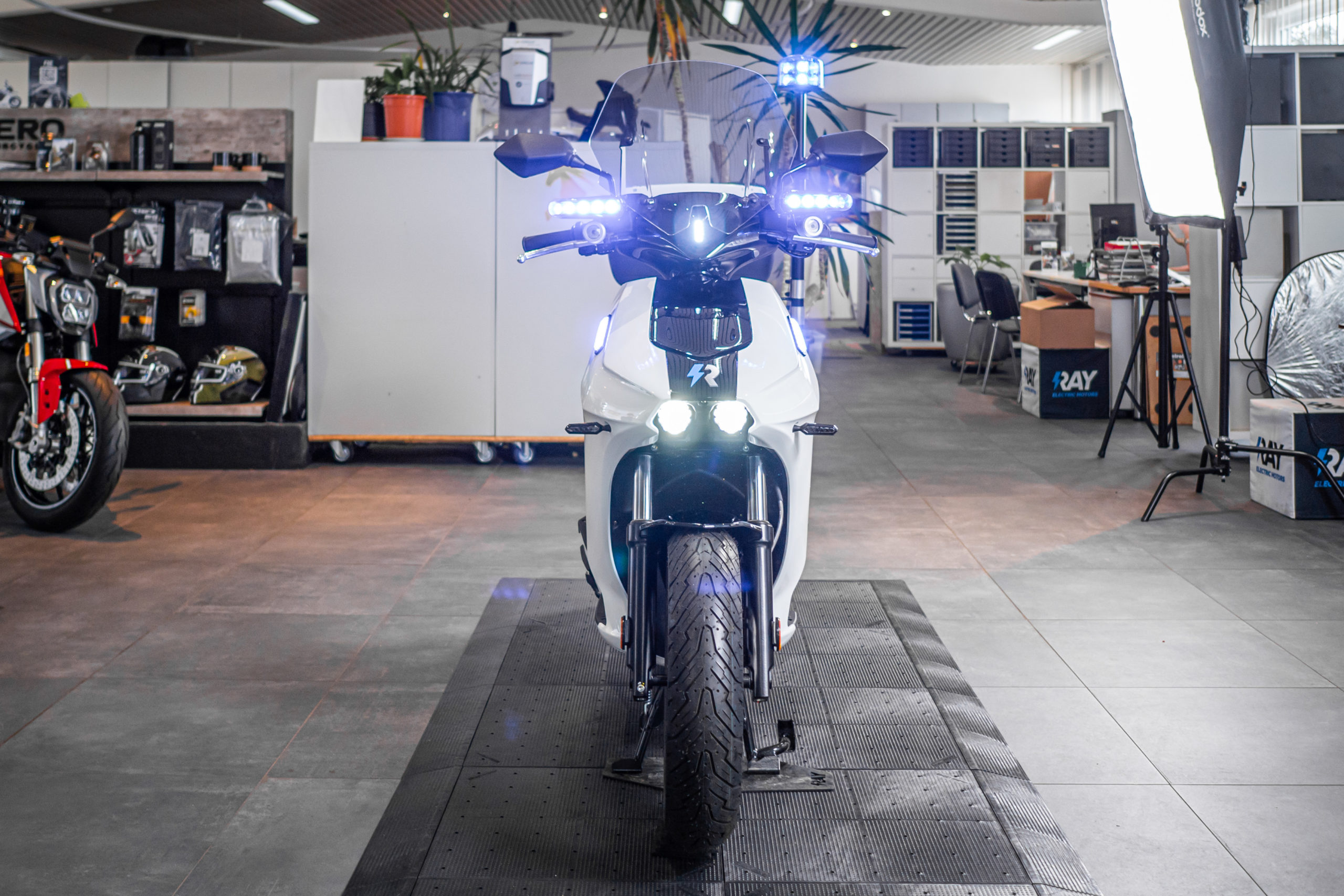 Von A nach B auf höchstem Niveau. Der fahraktive 129 km/h schnelle Elektro-Roller von Ray vereint Fahrspaß und Praktikabilität bei 100% Alltagsnutzen.