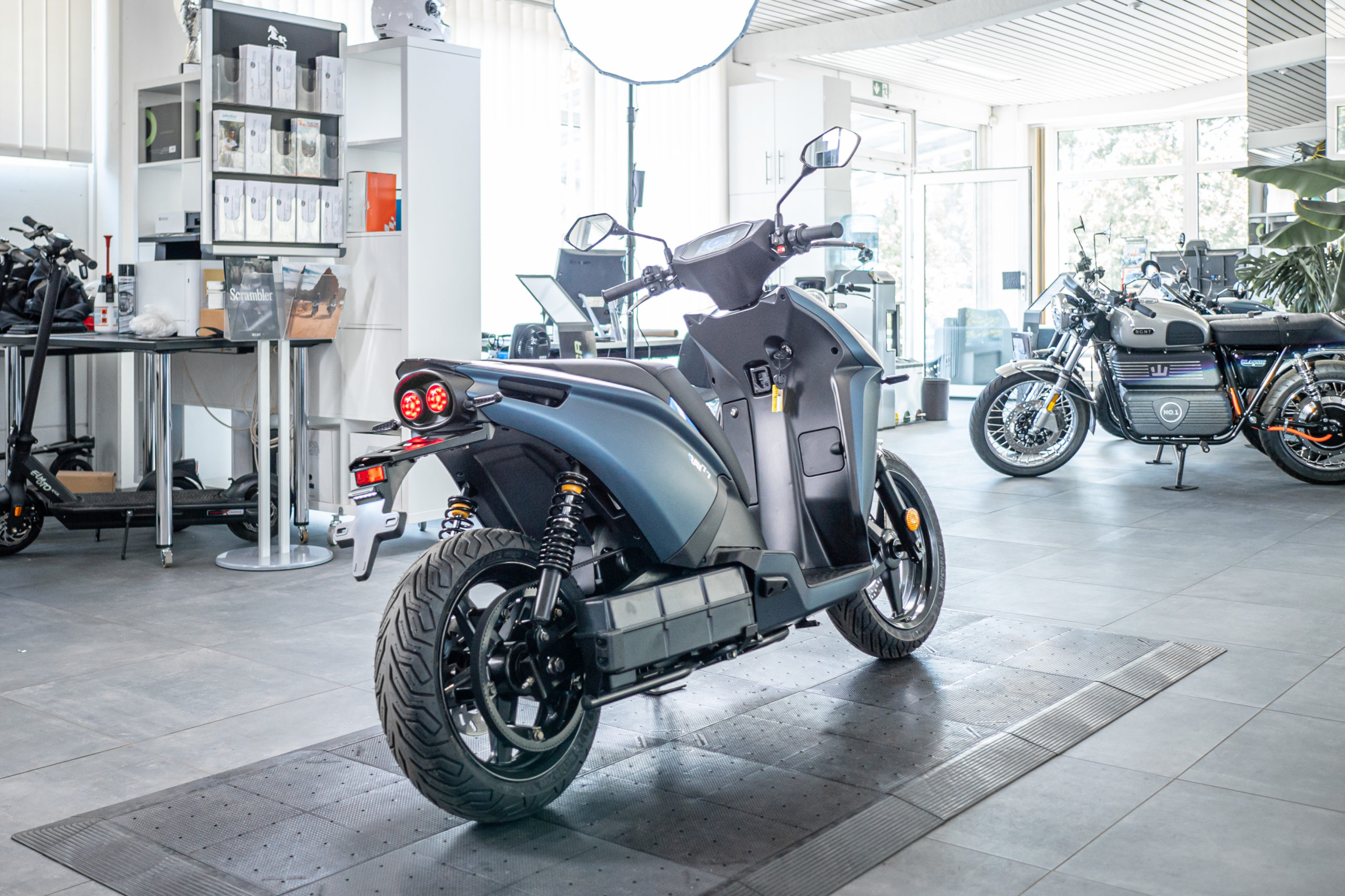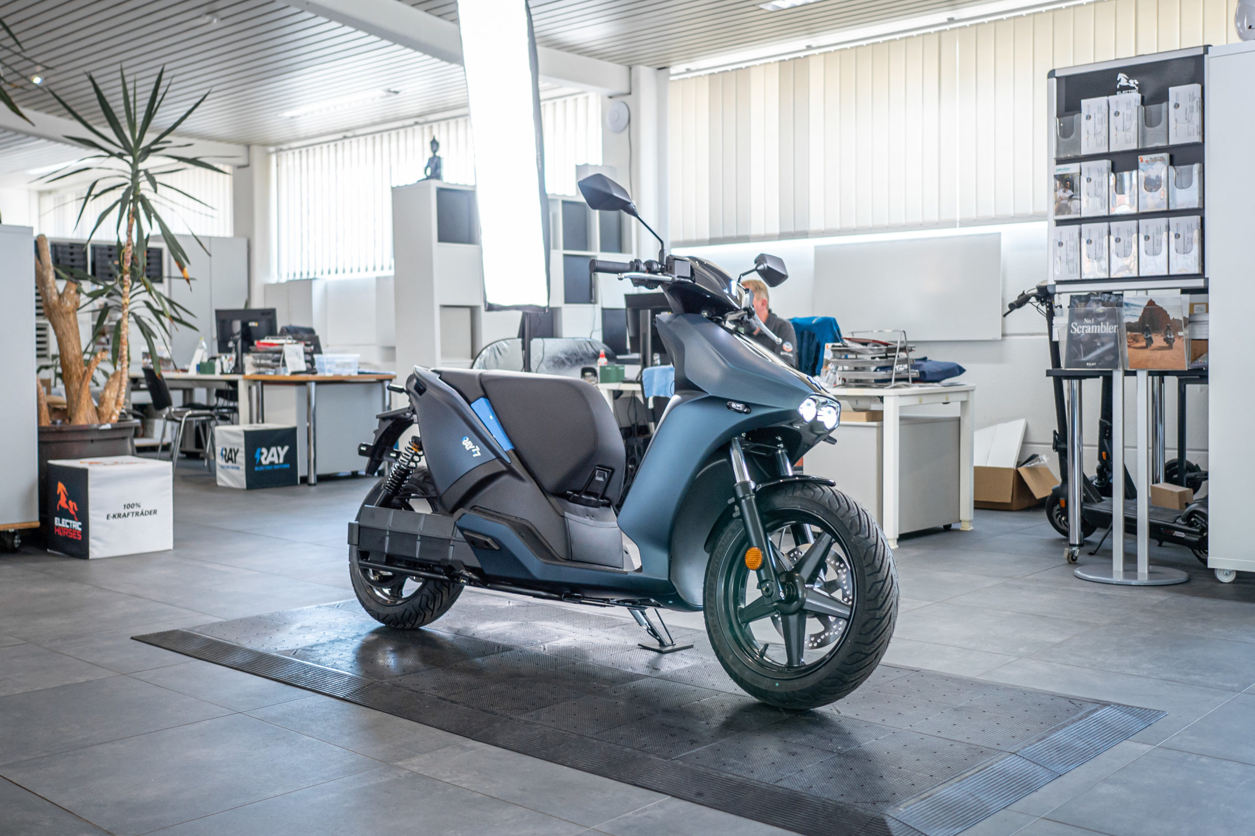 Von A nach B auf höchstem Niveau. Der fahraktive 129 km/h schnelle Elektro-Roller von Ray vereint Fahrspaß und Praktikabilität bei 100% Alltagsnutzen.