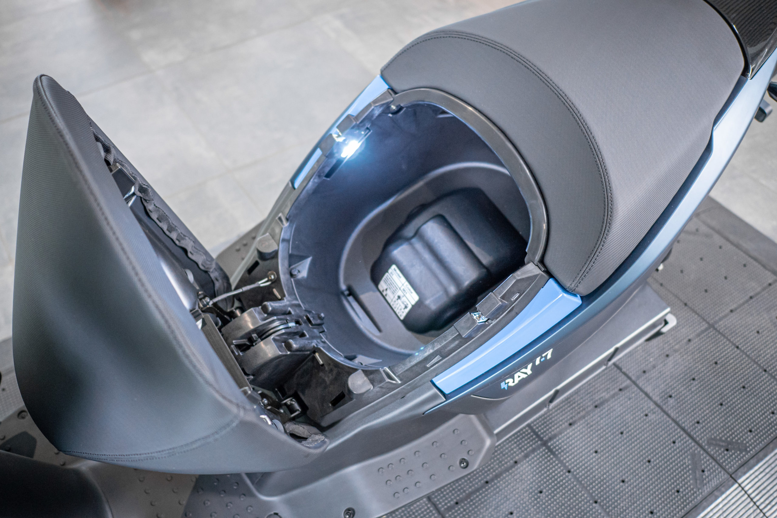 | Staufach Sitz | Großes Staufach mit LED-Beleuchtung mit Platz für vollwertigen Helm |